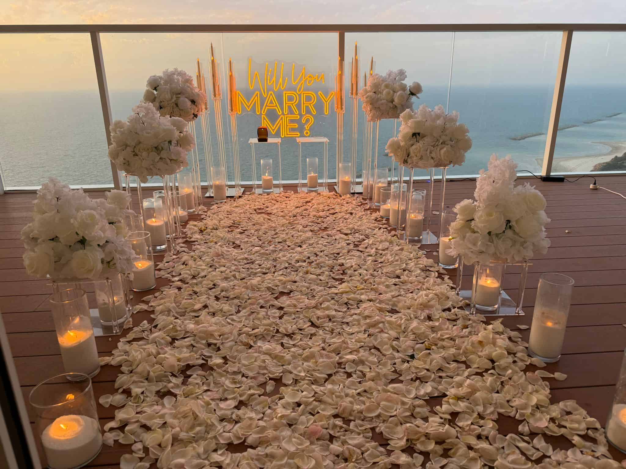 כן. ניתן לשלב פרחים, בלונים, שטיח, תאורה רומנטית, נגנים, שלט “התינשאי לי?”, וכל רעיון אישי שחשוב לכם – בהתאמה מלאה לאופי הזוגי שלכם.
